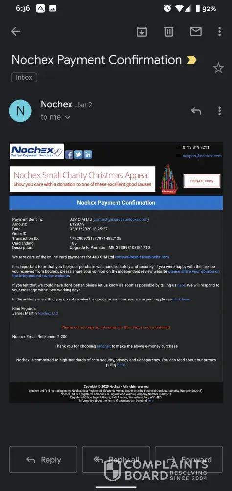 I paid 70$ in two installment first one 28$ and second one 42$ on their service which says that they will unlock my activation lock but instead they took my money and later claim that it can't be unlocked or refunded. Under Statutory Rights & Consumer Rights act 2015 I am in fact entitled to a full refund, irrelevant of any terms and conditions listed on their website. Also they send in a mail which says that if I can prove that my phone is not barred then it can be refunded and I proved that my phone is not barred from one of the website called swappa.com.esp which was mentioned in their website but they won't respond to my mail so I request your assistance in this matter.