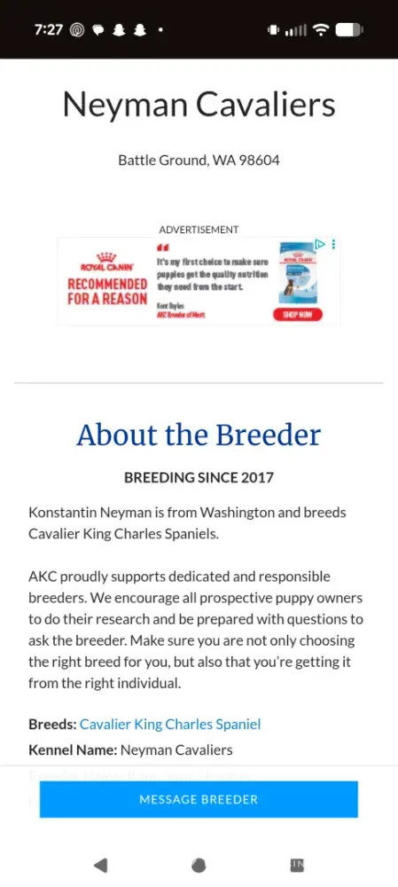 Neyman Cavaliers Battle Ground Washington - Defective puppy without prior disclosure