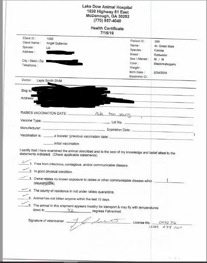 Angel & Liz Gutierrez owners of DKV Rottweiler sold us a sick puppy. We notified them 2 days later of picking up the puppy and they blamed it on traveling, new sounds, new environment. We even told them that the sire grandfather died of a heart condition, and the vet admitted to not providing proper medical care. They refused to issue us a refund and...
