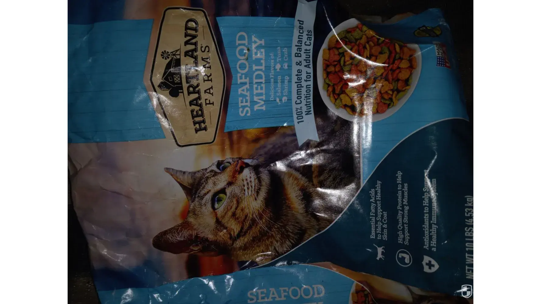 I purchased a large bag of Heartland Farms seafood medley cat food on April 21, 2023 and now that I have been feeding it to my cats for a little over a week, I find a very large chunk of molded food at the bottom of the bag! I hardly ever buy that brand but didn't have a choice since there was absolutely ZERO other bags of cat food on the shelves and no...