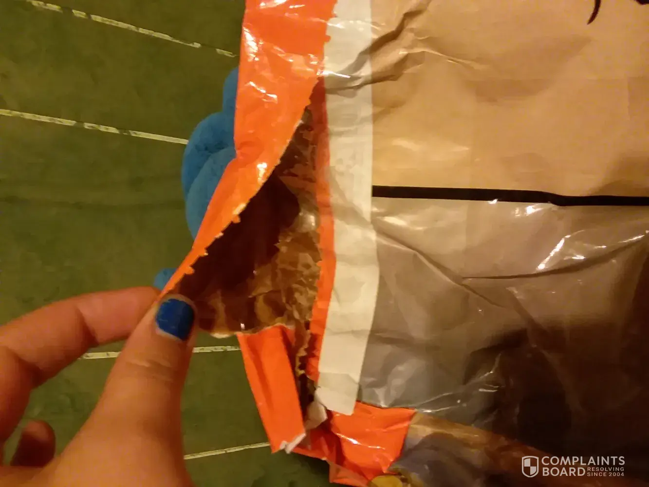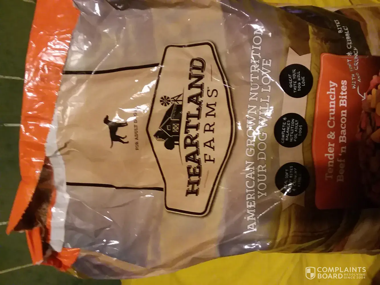 I went in to purchase a bag of dog food (Heartland farms tender and crunchy beef n bacon bits). There was only one bag and it was open at one of the corners of the bag. This is the only kind of dog food my dog likes. Also this is not the first time this has happened to me. The last time it happened the lady who was checking me out gave me half off the price...