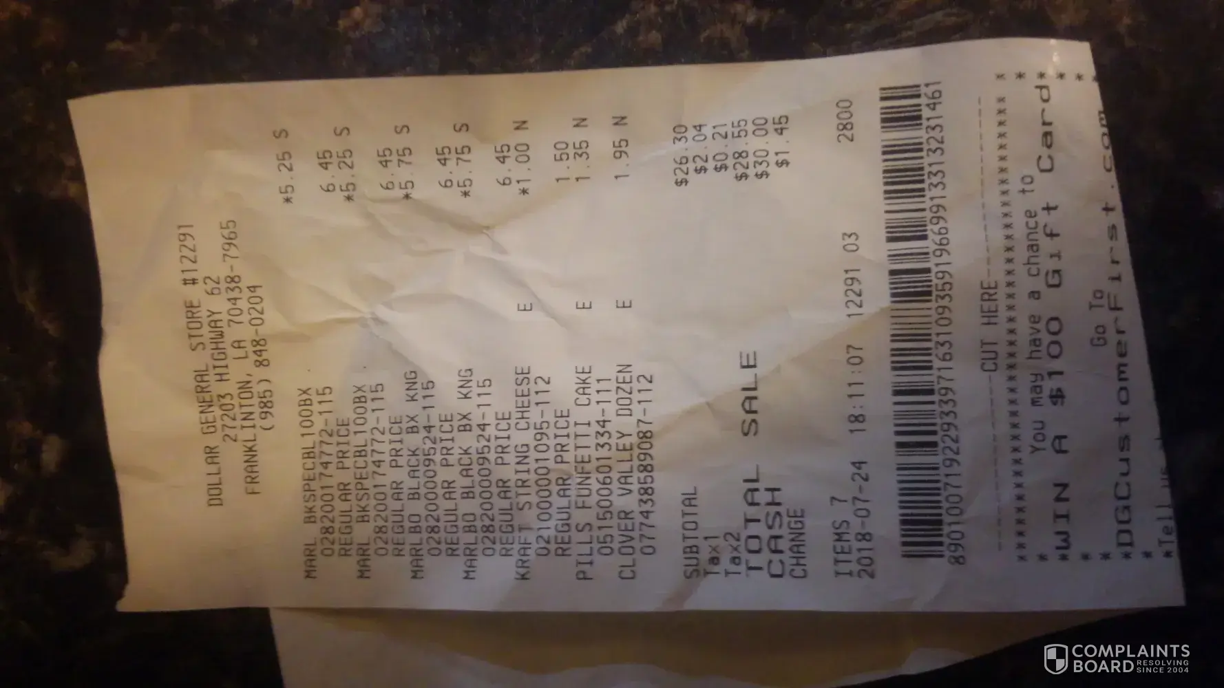 I went to Dollar general in pine Louisiana and got 4 packs of cigarettes. I asked the cashier if all the things I bought was in one bag she said yes but when I got home my cigarettes were not in the bag I searched my vehicle to make sure they didn't fall out and didn't see them so I went back to the store and I was told they were given to me and I explained to the manager what happened she said she looked at the camera and seen where the cashier put them on a bag and I grabbed all my bags. I told her all I had was one and my cigarettes were not in there. I was told that they were put in a bag and I grabbed it. So I went recheck my vehicle and still no cigarettes. I recheck the bag and no cigarettes. The cashier name was Wendy.