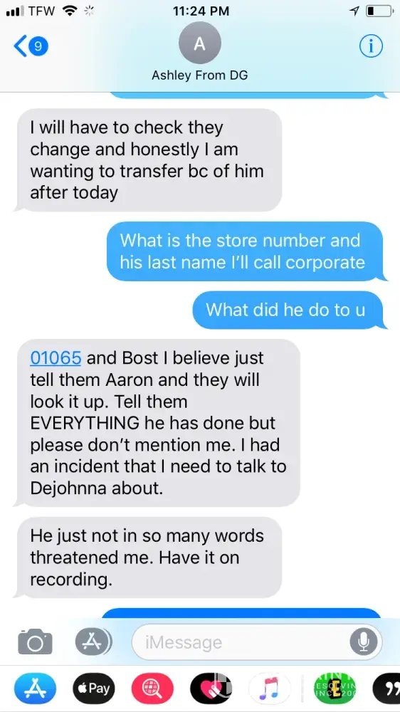 Hello I am in mountain Home AR . A employee by the name. Aaron Bost has came up to my kids touching them grabbing them one day he took a small garden hoe and tripped my son cause his whole side to be black and blue this last time he took a box cutter asked my son if he wanted to taste his own blood I have made complaints to his manager. Well tonight my nieces husband walks in as I was walking out telling him that he was going to hurt me not knowing that was my nieces husband or that that person knew me nothing gets done and this sicko won't stop I have more photos I will attach when I get a call or email