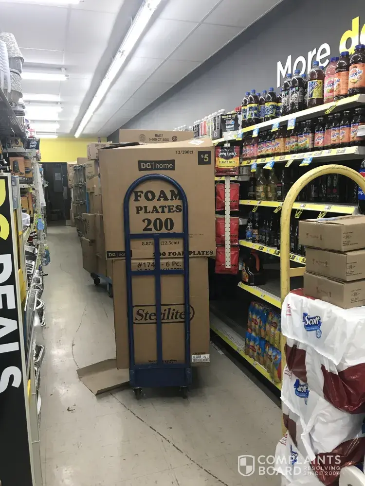 It seems each time I walk into the Dollar General at 04201--5160 Main St. Mount Jackson Va.-there is stuff sitting in the aisles and it is hard to walk through without a cart-with a cart all you do it hit objects. They sit the pop and water outside where the sun shines on it-THAT is not healthy. Once you get to register, you stand and wait sometimes 5 minutes.I just think the store should be better arranged and staff willing to wait on people-and clutter from aisles-there is always things from shelves on the floor-I used to pick it up-but I don't get paid to do their job-a job they should be doing. They are not all friendly either. Well I just wanted to let you know so something might be done about it-they better be glad I am not the boss.