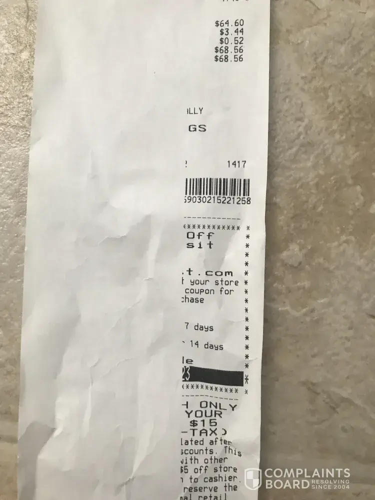 For the past several months, one of the two registers (used regularly) prints an incomplete receipt. I have a serious problem with this. Thank God, I haven't had the need to return anything back but how could I if the items purchased could barely be made out on the receipt. Only thing listed is the price, not the description of the item. I've brought this concern up several times and was told that it has been submitted up through corporate. So now, it's been almost 4mths and still dealing with this issue is not only an inconvenience but poor customer service. I ask that this matter is resolved to prevent any future altercation from any customer in the event an item is returned or want to obtain a cash refund.