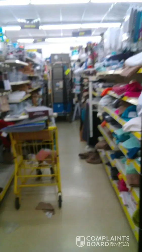 The photos tell the story. I visited this store on March 21, 2018. I feel really sorry for the employees trying to work in this dump, you can't even move in this place. It looks like a tornado ripped through here. It's been going down hill for a few months, I was hoping it would get better. I'm taking my money to the Family Dollar down the street, it's immaculate!