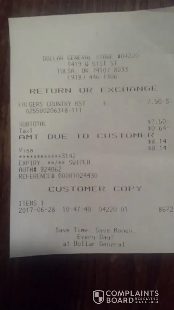 On July 30, 2017 I shop at the Dollar General at 1429 West 51st St. Tulsa Ok. 74107.