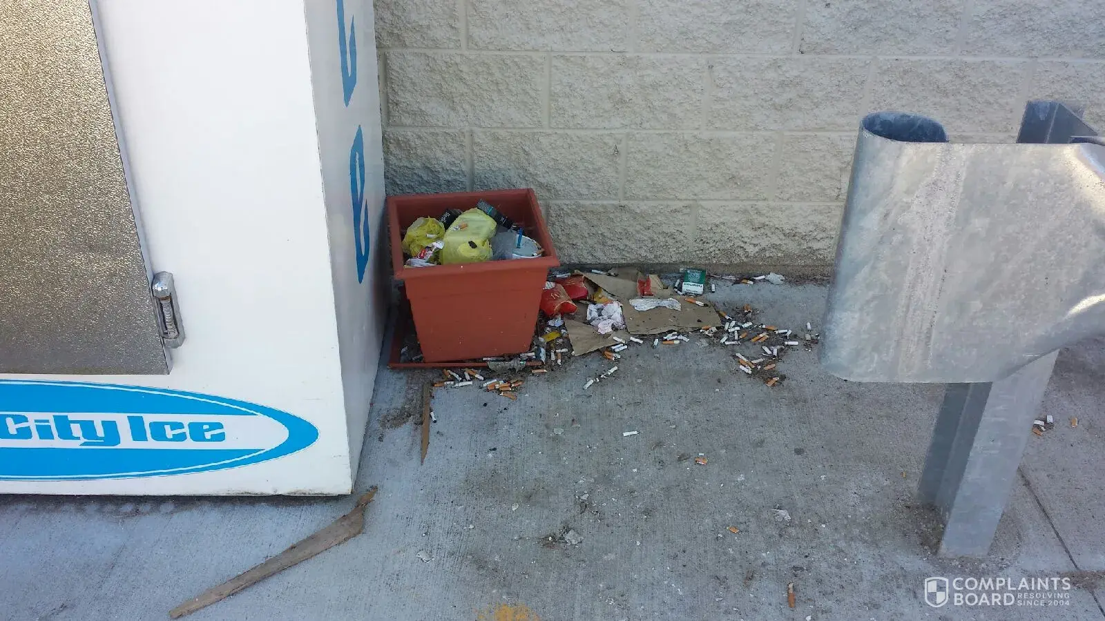 This store has too much trash outside. things like cigarette butts everywhere, cardboard trash in lawn. broken glass. etc. My son is 7 years old and was going to use the outside trashcan, but there isn't one and i watched employees just pile trash up next to building. also watched them throw cigerate butts on ground. I wouldn't let my child go anywhere near that store without me. its a shame. Sometimes there are 4 girls working in there...I guess not one of them wants to clean the parking lot. YUCK