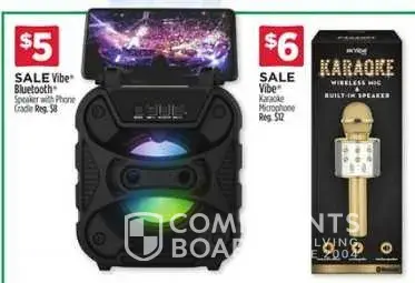 Vibe Bluetooth speaker with phone cradle in ad for $5
