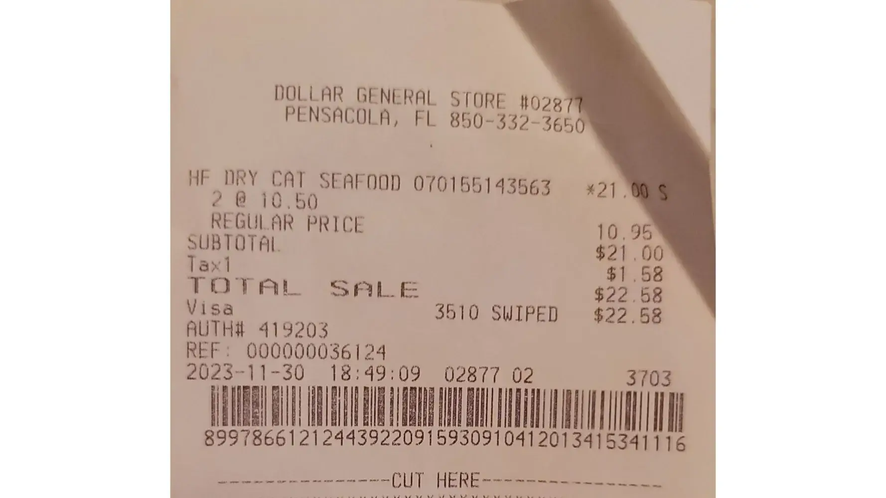 Claimed loss: $22.58