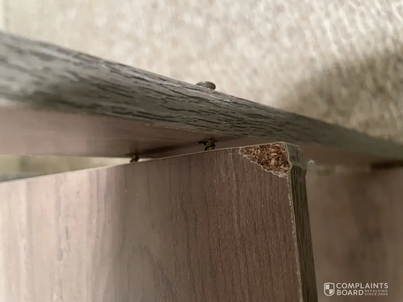 Every shelf has busted corners, missing screw, holes won't line up! This shelf is literally garbage. I'm so disappointed! This was of course after the associate overcharged me $36.38 for products I did not purchase!! Had I not second guessed her, she'd have literally kept almost $40 of my money for free!