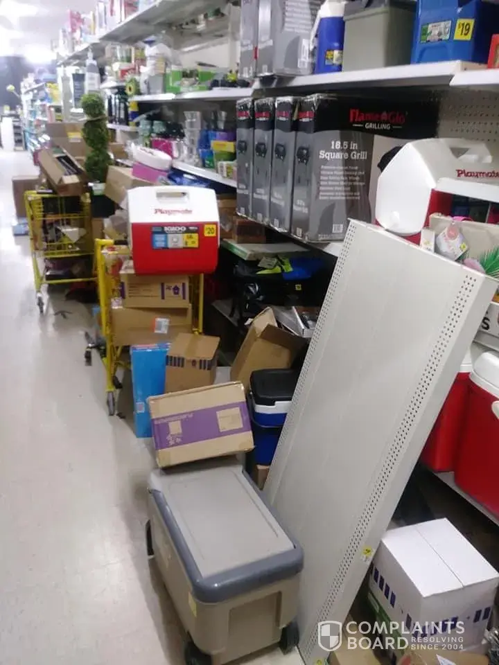 For years this store is a mess. Merchandise in the aisles. Employees that do not care. The most concerning is elderly shop here and the appearance of the store is unsafe. As you can see by the pictures and other posts it seems to be that all Dollar General stores do not care of their appearance and safety of their stores. You would hope that with all of the complaints that something would be done.