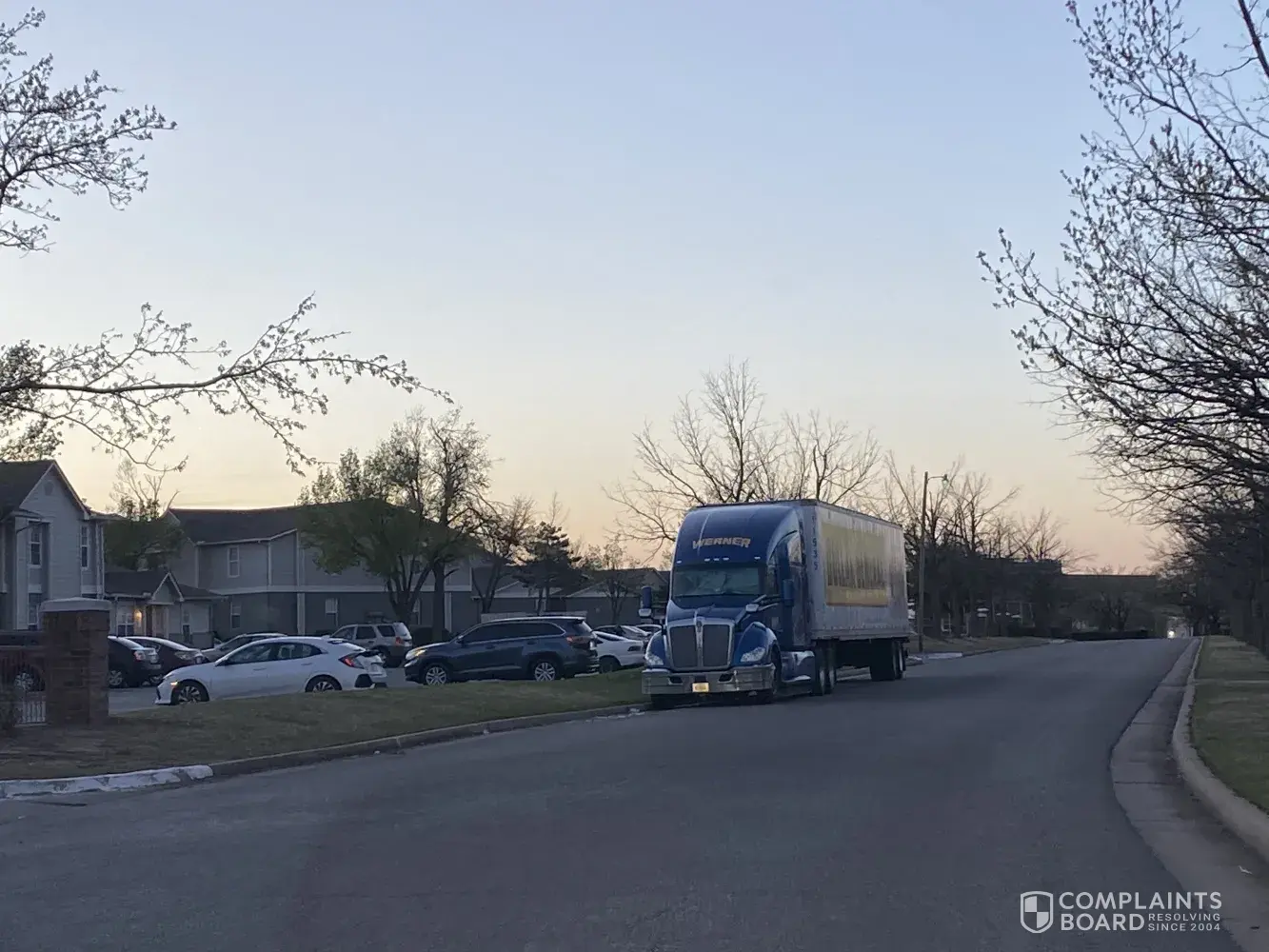 Dollar General Semi consistently parking on residential street. 800 Block of Brookwood Drive, Oklahoma City, OK 73139. This truck parks here several nights a week and causes issues when having to pass. Was parked there during heavy snows a few months ago. I'm not sure where the individual lives as parks on the street in front of apartments.