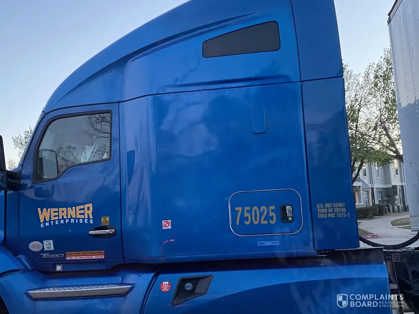 Please find out who the driver is and inform them that this is not an approved parking spot for semi's. Cab - Werner Enterprises, Nebraska tag W29064 or N29064, 75025