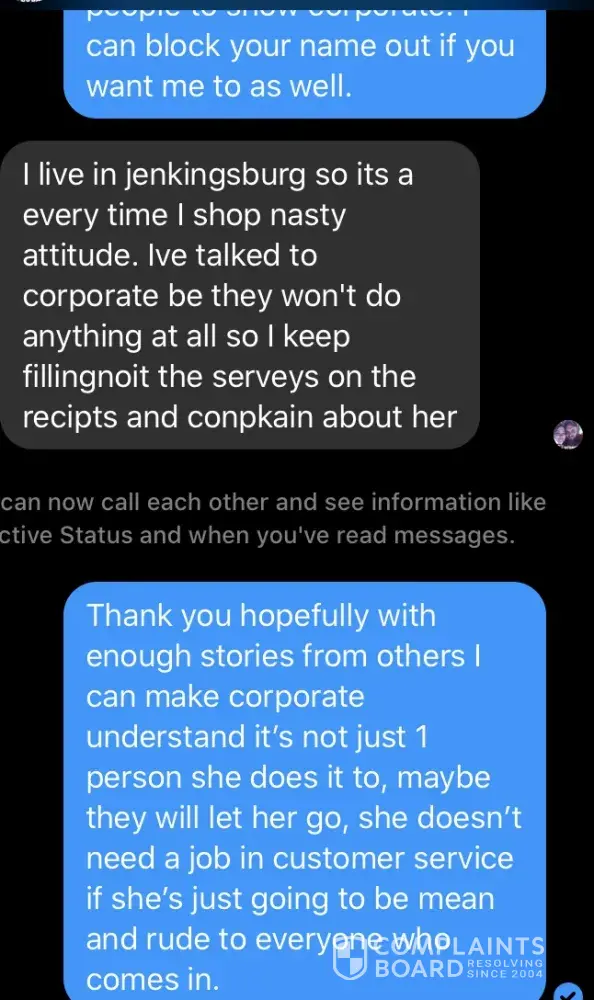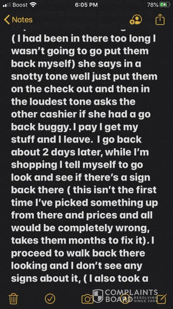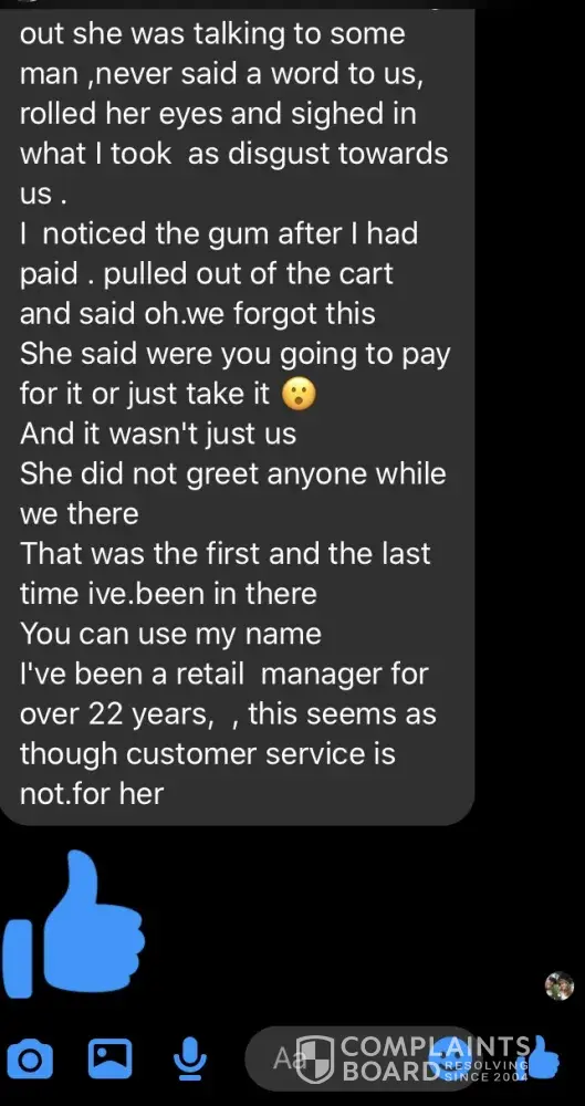 Read full complaintUnacceptable attitude and general demeanor of cashier/store manager