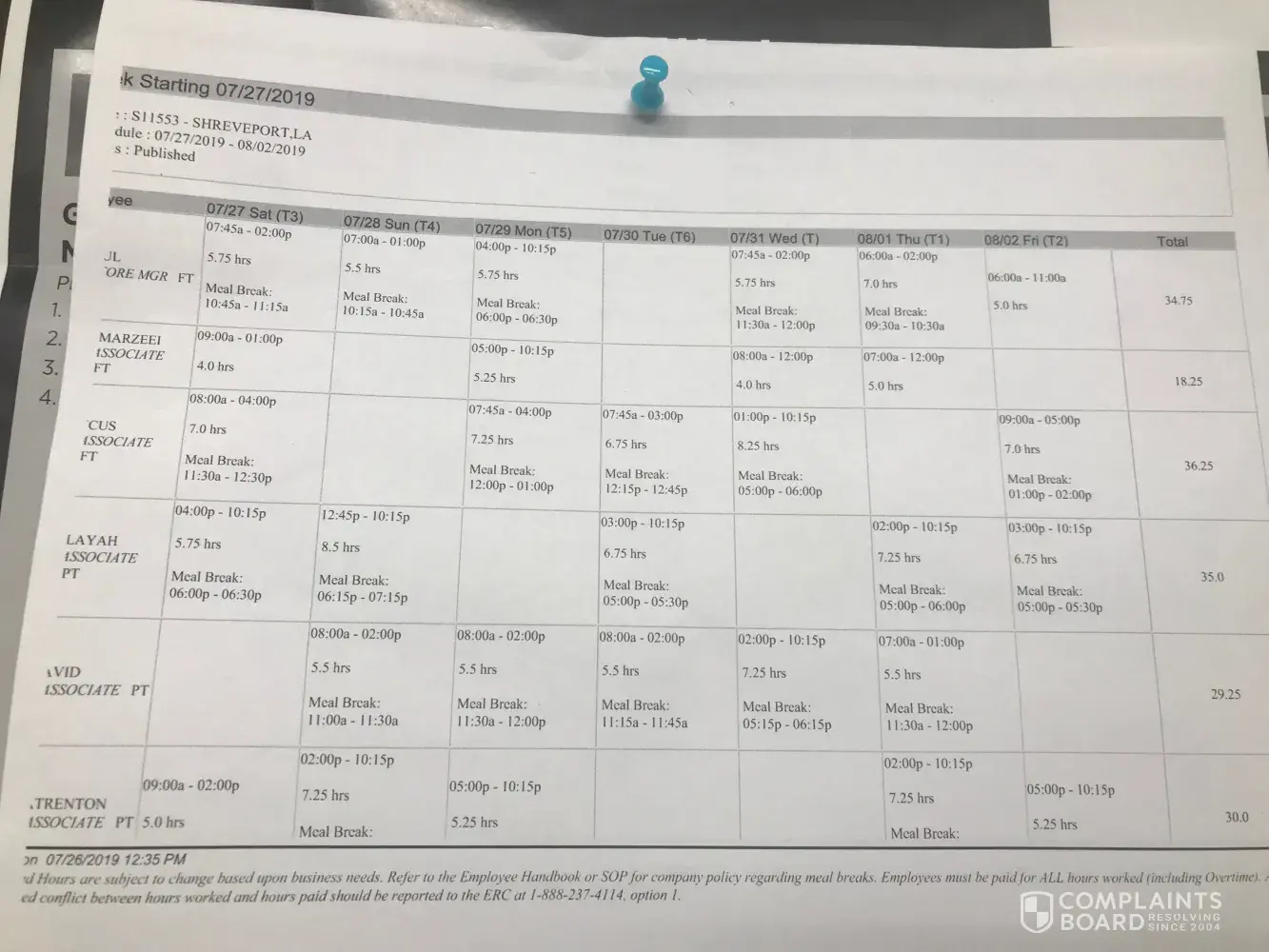 To whom this may concern and the corporate office in headquarters I'm filing my complaint on store 5690 west 70th street in shreveport La 71129 store manager P.J on July 27, 2019 he hired me fix the schedule told me he will work with me on everything I needed to know about the store and what I didn't know he will teach me in training me on how to do so will...