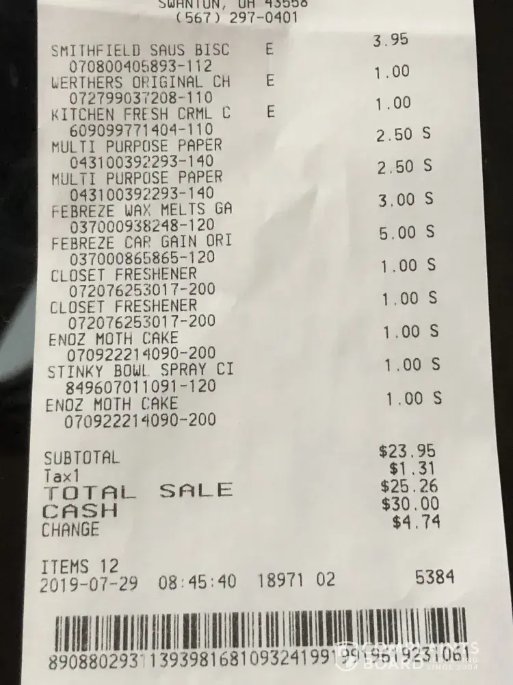# 15373 store 1247 W 68 ST Hialeah Fl 33014 on 7//22/2019 18:29 PM $3.14 .I had brought 2 bras at store #15373 one i tried was great other i know size was bigger so did not try, wanted to see if other store could change for correct one. The young man cashier, I said here is the one i want and the one in bag i want to change, So he grab the bag and threw on...