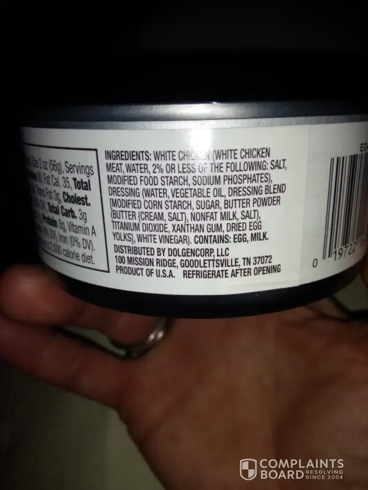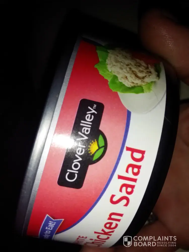 I'm writing in regards to the white chicken salad by clover valley. I shop at dollar general everyday and I mean this I've always been the type of person that would stick to what I know, well I have been with a very tight budget and found myself with more family members to attend To.. So I decided that it was time to get the products that I could afford to feed everyone in my home, .. Now I am very disappointed in myself because I thought I was doing the right thing for my lil people's that's what I call my grand babies so anyway I was down to four dollars and some cents (I thought ) and bought some chicken salad in the can just to be able to feed the lil people and there it was a open can of idk mold is what it looks like... I am adding pictures for everyone to see.. Now that you know what kind of products that your company is producing and sending out into the world of lil people what do you intend to do about this...? I'm very disappointed in myself and your product, , if I would have just stuck to what I know then you would not be receiving this email and I would not be giving my lil people's a wishful sandwich! Dang you and I..!