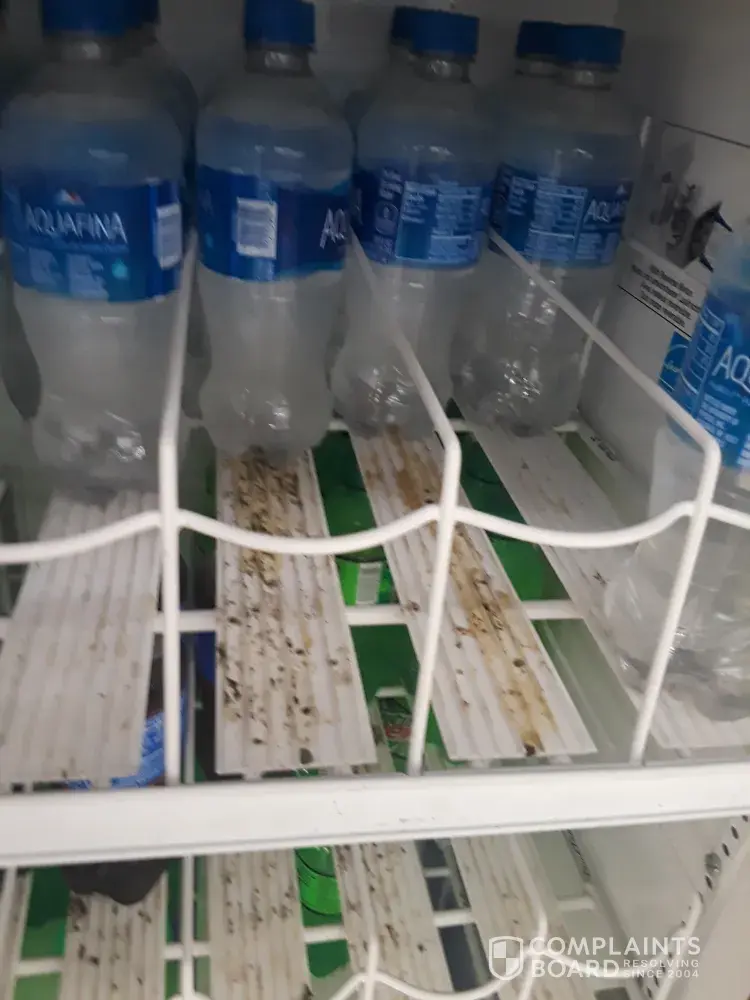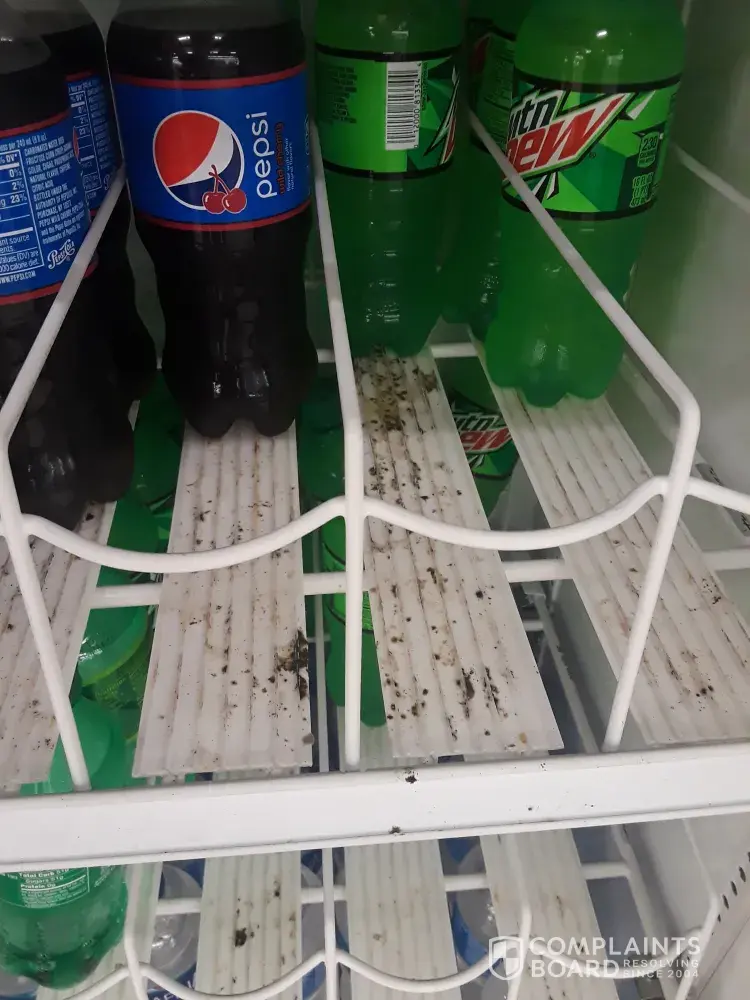 The Pepsi refrigerator is filthy with mold and mildew. When I brought it to the attention of the Store Manager Shawn or Sean (I'm not sure of the spelling of his name. He said "I have called Pepsi to bring another one; but just after that, the stocker began to refill it with new product ad food not clean it. He said "I just work here". I feel that we should not have to purchase a product where we are exposed to mold and mildew. I feel that these refrigerators should be disinfected immediately and mot overlooked.