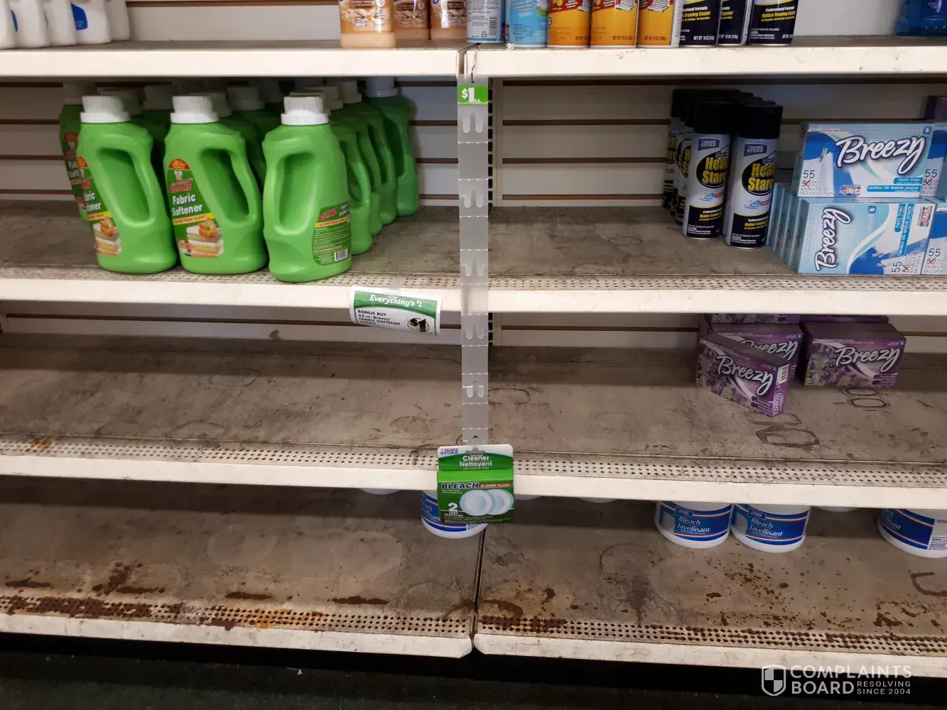 Dollar Tree earns a 1.1-star rating from 4 reviews and 2983 complaints, showing that the majority of bargain shoppers are dissatisfied with their purchases.