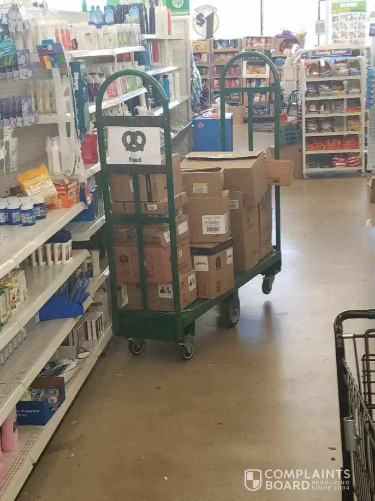 I have attached a few pictures to show what we witnessed at this store. I pray that someone takes the time to look into my complaint and rectify the situation at this location. I honestly believe if this continues, this Dollar Tree location will not last very long.