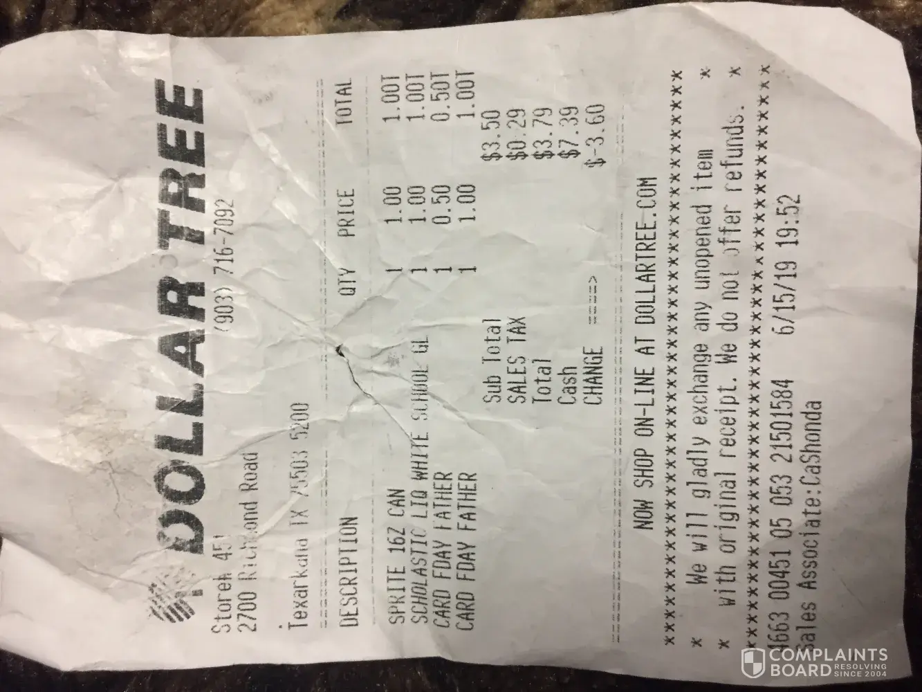 I will still go to Dollar Tree but never again at this location. Check it out, compare your stores and fix your issues.