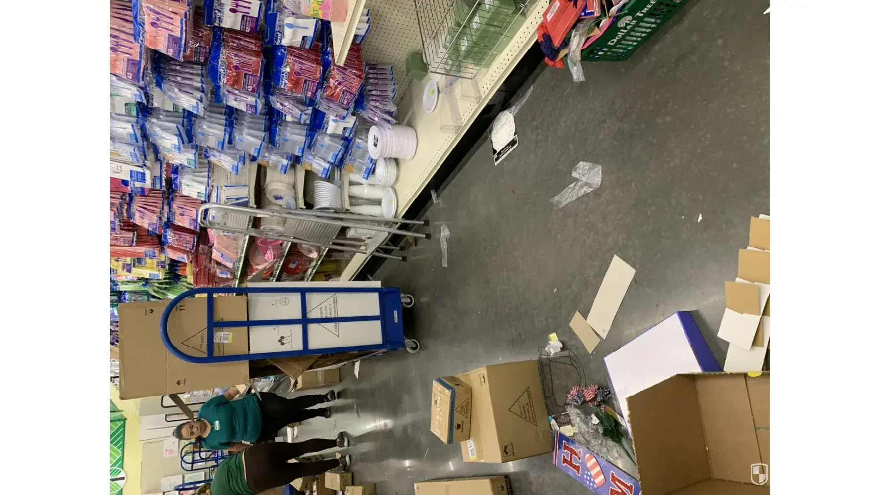 May 23 2023 at 11:30 am I went to shop for some items I needed and I was so happy that I found everything I needed. I was getting out of a aisle going to the next turning into the other where there are cookies and spices when I seen 2 employes one with a black shirt and one with a blue shirt and they were loading up a cart with boxes the girl in the blue...