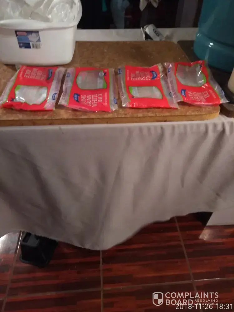 I got my order on Nov. 24, when UPS delivered it there was so much rice spilling from the packaging, I got 8 full bags got my rice, but in the plastic packaging there were 4 bags of the rice torn, so there was rice spilling all over the place. I think they were torn while in transit so I believe you all owe me 4 bags. I have tried calling customer service, finally hung up after like 32 minutes. I really need replacements or credit my card.