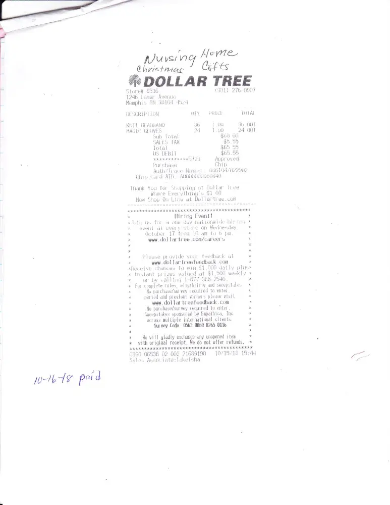 I picked up my order in the Dollar Tree store on October 15, 2018 and was asked by the cashier to pay for the item in the amount of $65.55 since it was still pending on Pay Pal. I charged $65.55 on my credit card ending in ***********5723. Authorization approval number 086104/022902. On October 31, 2018 another $65.55 was deducted from Pay Pal with my...