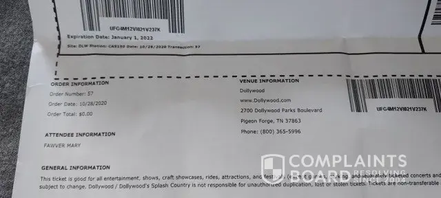 Desired outcome: Honor the expired complimentary ticket this time due to the impact COVID has had on everyone. There was a time during the pandemic that Dollywood was not open.