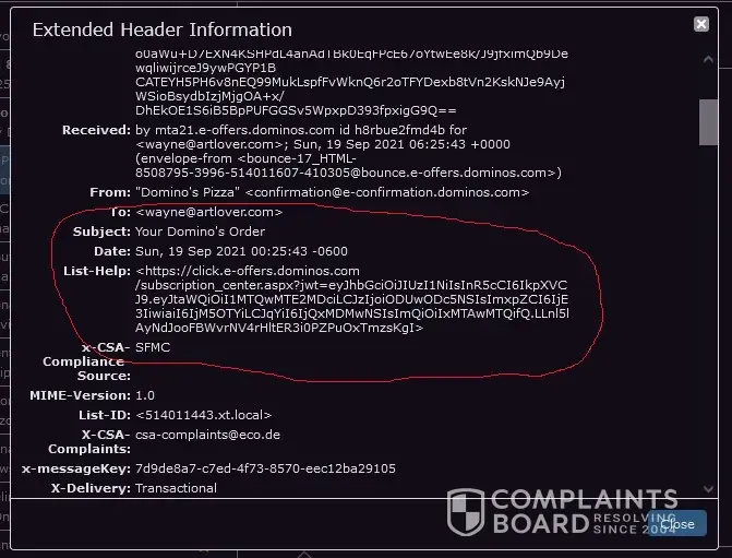 I also sent email extended header information of my Domino's receipt for actual correct time to him, which was 00:25:43, military time. In other words, (12:25AM, plus 43 seconds).