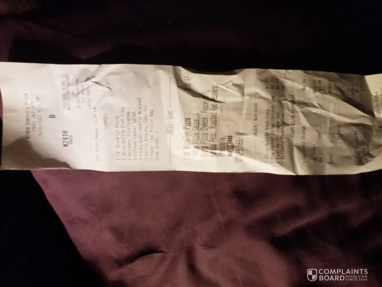 [protected] It was cold very thin crust we spent a total of$26.48 ticket #431