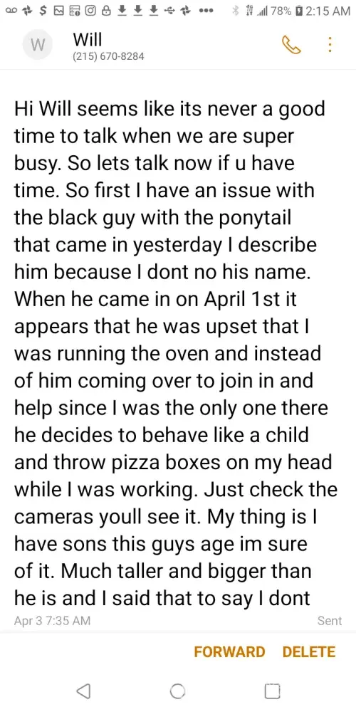The manager "lathe" at this particular Dominos have treated me as if I'm his slave and that's literally. He has accepted money at the end of the night from other employees that was supposed to help close by sweeping and mopping etc. At the end of a long night the employees didn't feel like it so they simply pay the manager to do their share but instead of...