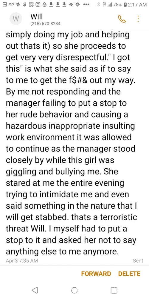 Bad product / employee using very foul language toward customer