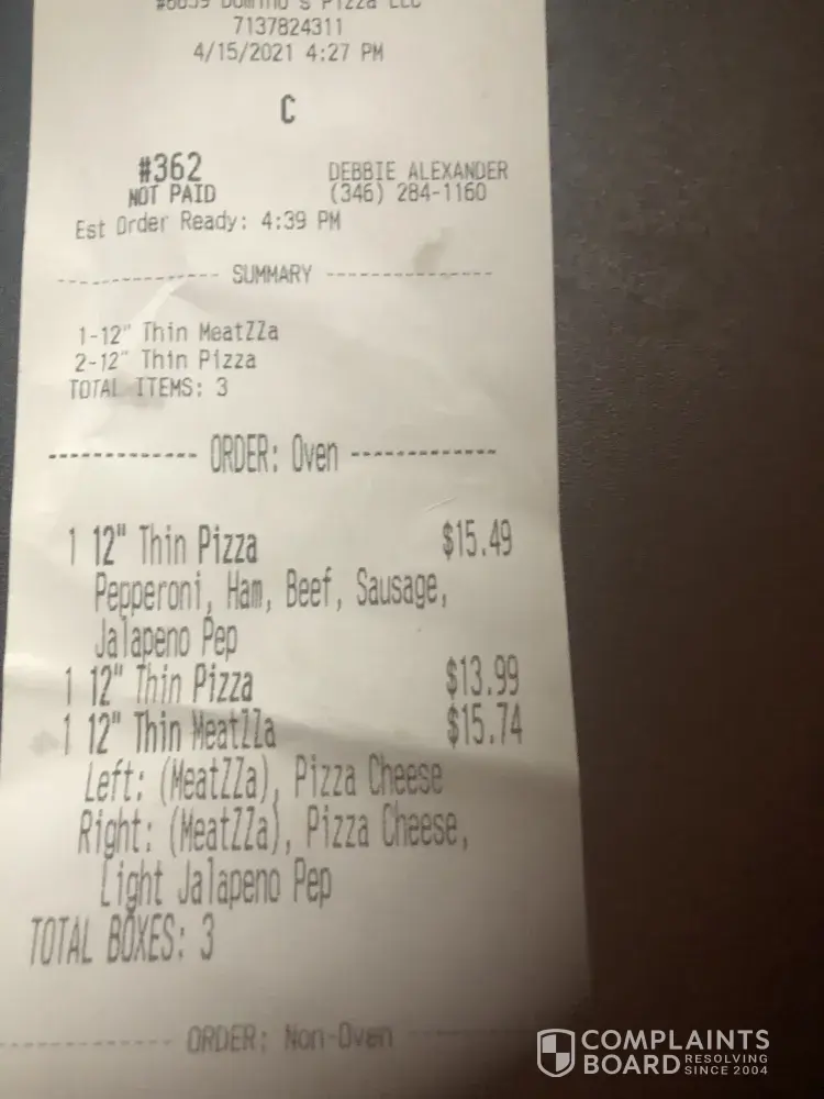 Read full complaintPizza