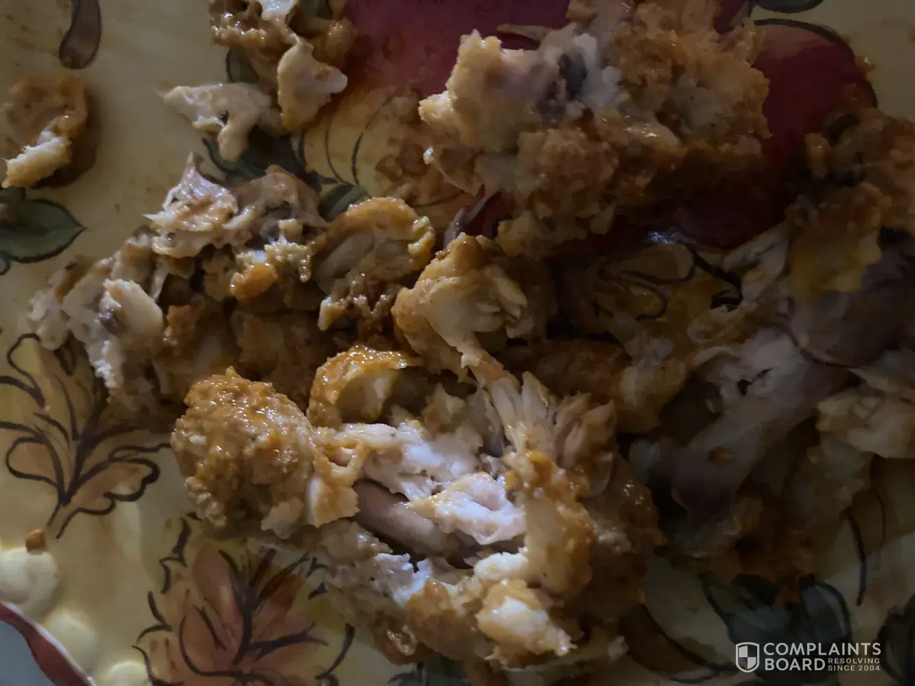 A bunch of fat little meat. Like putting fingers through a bat of lard.🤢🤮🤑 very disappointed i. This. I usually have good service from them. So when I got this box full of fat I was upset. My fingers literally ran through it like soft lard. Gross, disgusting and will never get wings or pizza again from there. I should have known better than to order from dominos!!! Seriously my bad.
