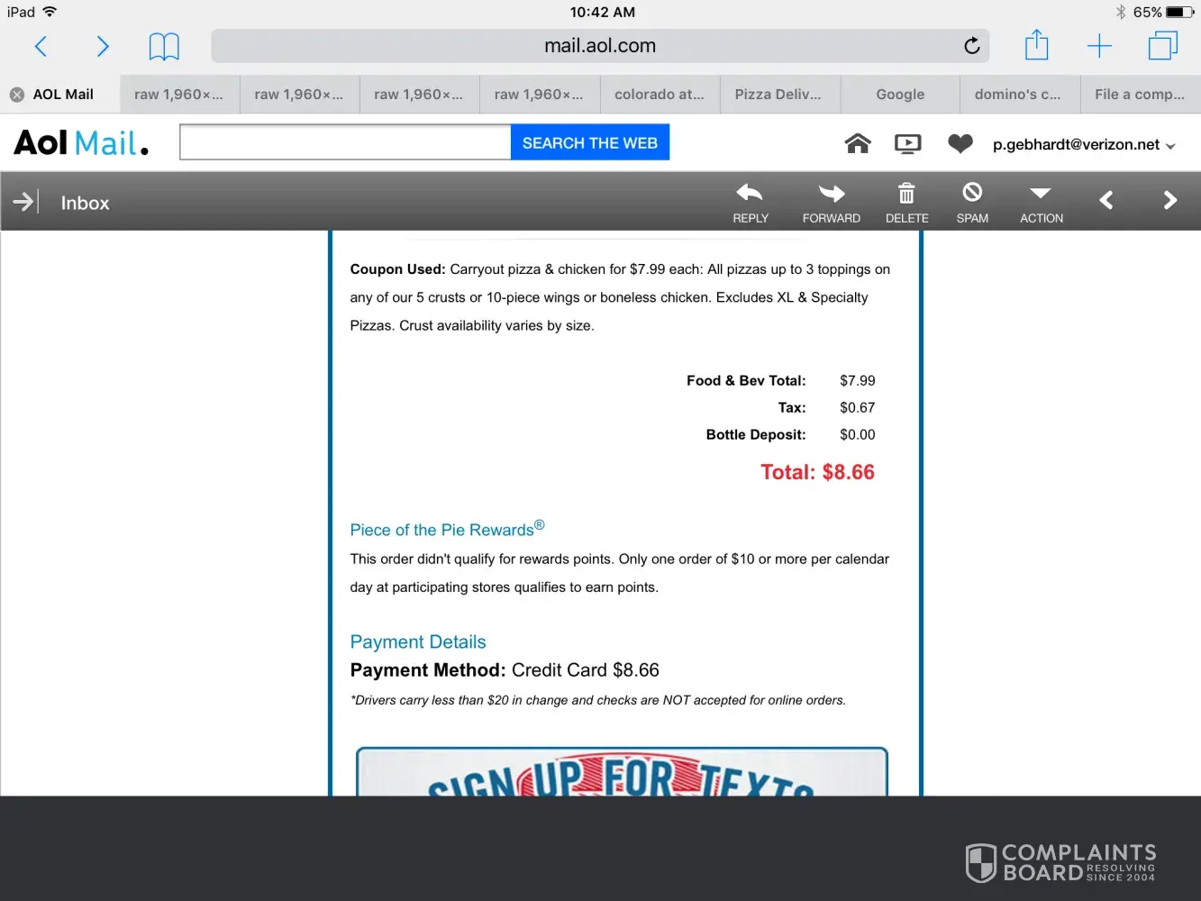 Read full complaintPizza order