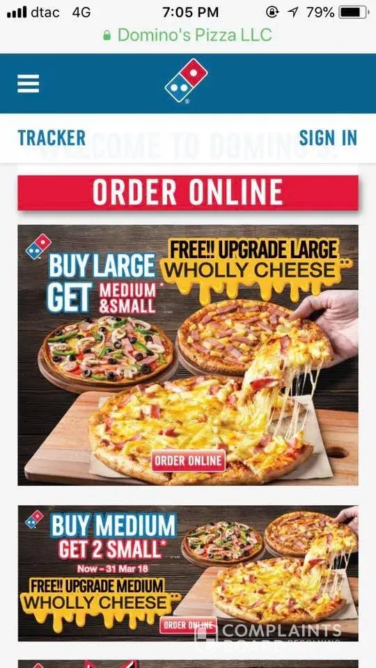 Hi i would like to file a complaint against your office in Thailand. I checked your website and you had the buy large pizza and get one medium and one small one for free. So i drove 20kms from my house to pick my grandmother up in town to take her for your pizza a block away. She's thai chinese and 80 year old and she loves your pizza.