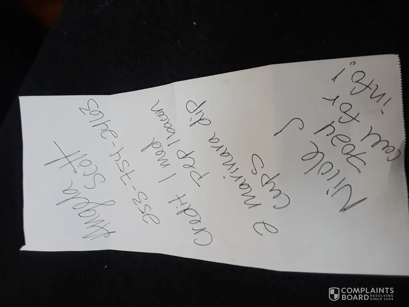I am writing to you to raise an issue about: Takeaways