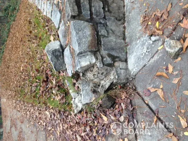 The driver got stuck on my retaining wall when backing out and he had to get a town truck to help him get out. I can say that I have lived in this house for 14 years, and this is the first person incapable of backing out of my driveway and getting stuck. He damaged my wall in the process and I want Domino's or the driver to repair the minor damage to the wall (see pic attached).