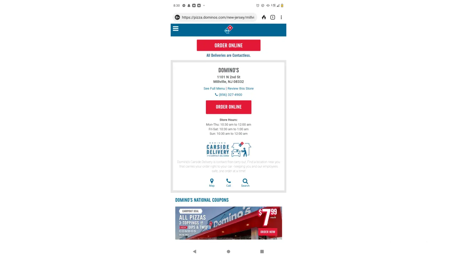 20 min. Later after the order was supposed to be cancelled the delivery driver showed up, I called back to the Millville, NJ store and she said I'm sorry we're short staff we'll cancel your order sweetie and hung up again before I could even spoke..