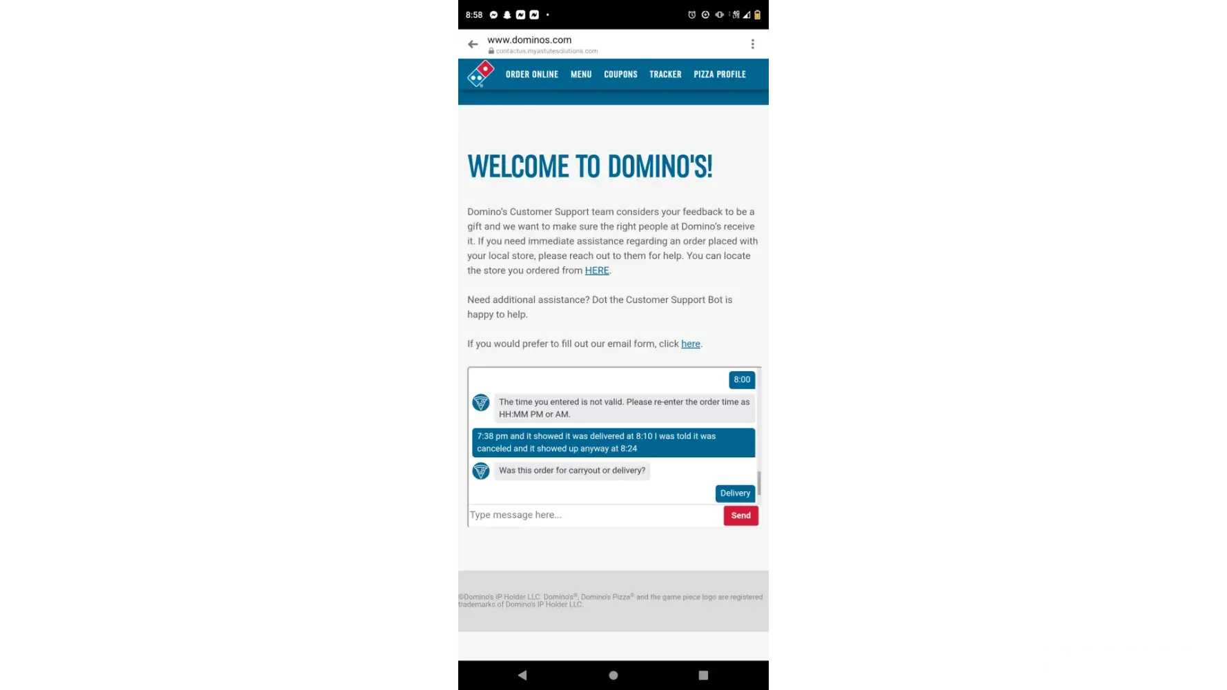 I don't know why I would ever buy another Dominos after such an exhausting and tedious experience, but the guy at the actual physical Domino's location prepared the food faster than this person took my order! And he made it right for me too.