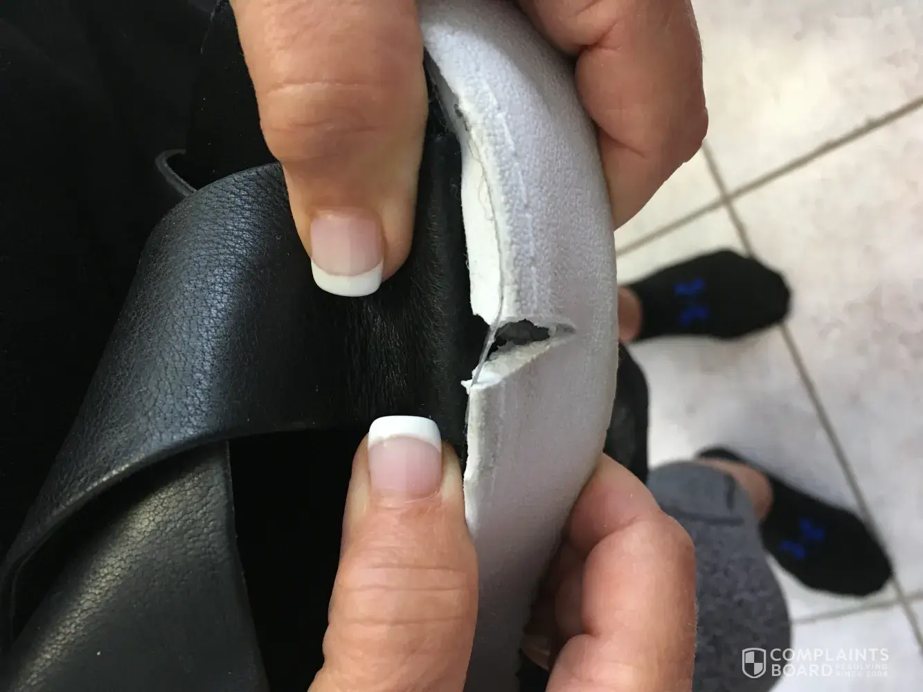 I bought a DKNY skirt, a pair of pants and a dress with fake leather parts and also a wallet. All fake leather parts dissolved in time so that I had to throw all of them away. I thought you were a high quality brand. It is pretty disappointing to have such a poor quality after I paid so much money. Your merchandises are not worth the price tag! I wore my DKNY dress in Mikla, an upscale restaurant in Istanbul during my vacation. It was all fine when I wore it but by the end of the night, it was in pieces as seen in the pic. You made me embarrassed.