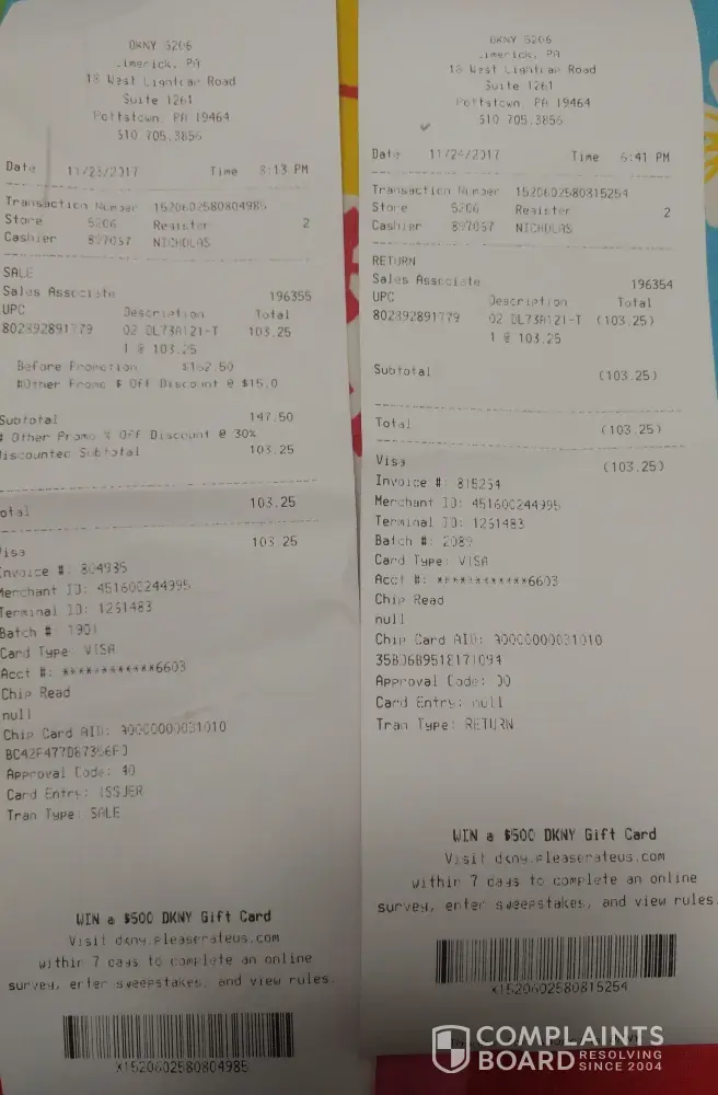 I have been emailing since 3 weeks and I have gotten no reply. Disappointed in your customer service. Will make sure I tell all my friends and family to not buy any dkny products ever again. Your quality has fallen so has your service.