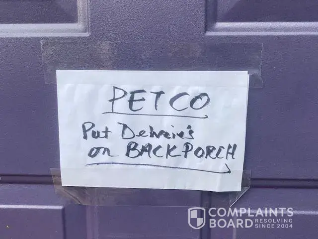 2022-12-30 Petco DoorDash Delivered 2 Items Dry Cay Food. 1st Driver Oleksandr M: Fri Dec. 30 2:27PM. Driver left package on the front porch not far from the top of the stairs, nowhere close to the Front Door and ignored the note. Called Petco customer service to see where the cat treats were, because their not in the bag with the cat food. She looked it up and found a picture from 2nd Driver Tyson A. 2022-12-30 Petco DoorDash Delivered 1 Item Cat Treats. Fri Dec. 30 2:32PM. He Left Bag hanging on back gate on the outside of the fence for some one to steal. If I hadn't called their customer service I would have never found the bag.