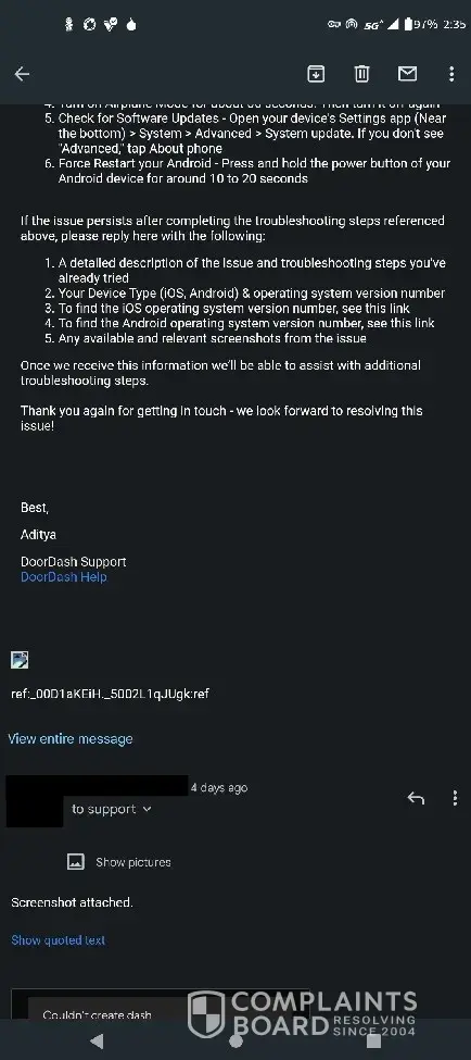 i spent 25 minutes on the door dash toll free number was told would get a refund i never saw it they stated would go to my email.