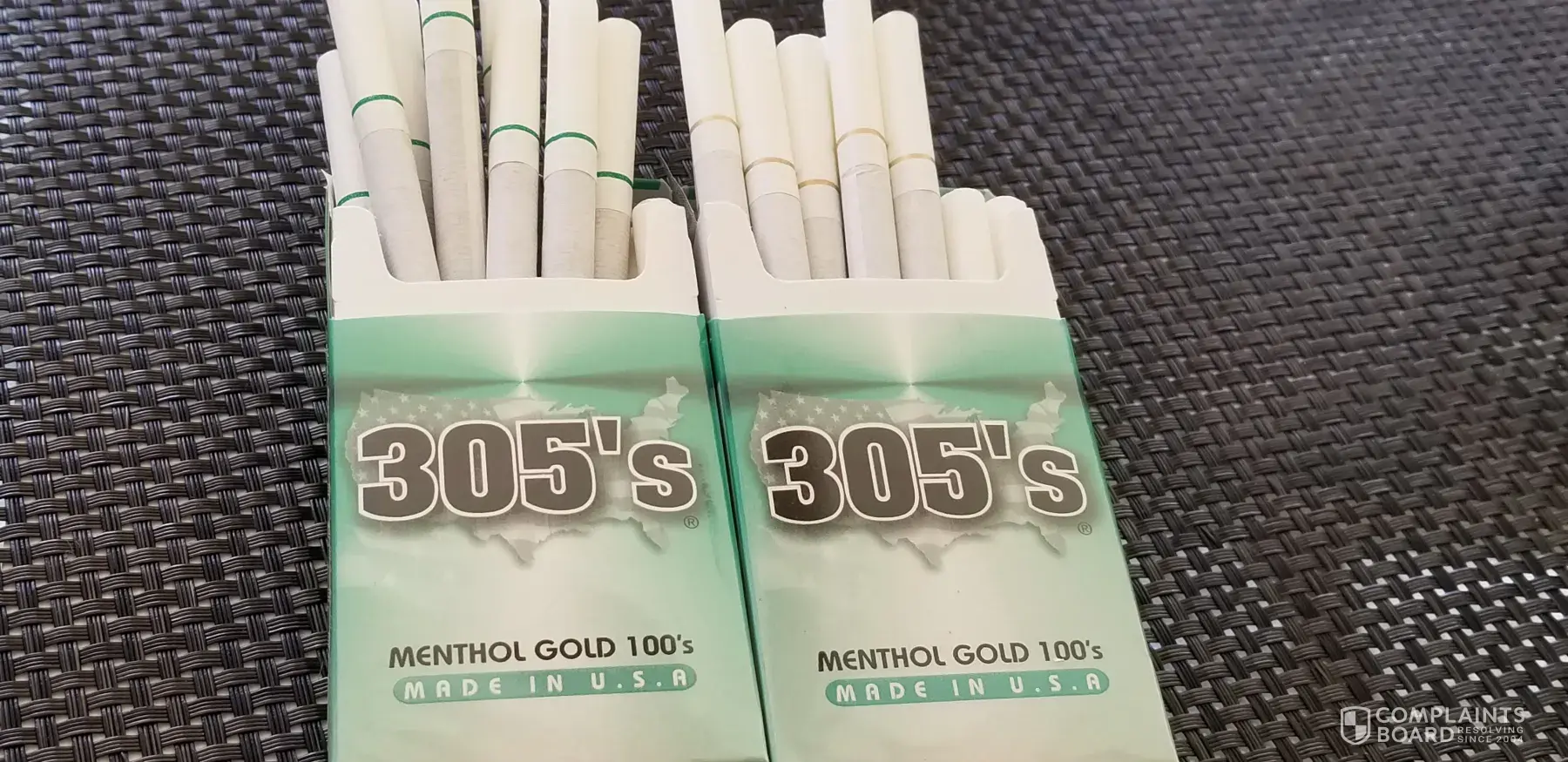 For years I have purchased a carton of 305 menthol gold 100's on a weekly basis. Two weeks ago I did the same. Opened the first pack, it was a white cigarette, lite it, it tasted stale. After looking at it more closely, I noticed it had a green ring at the filter line. Tried to take the 9 unopened packs back to the store. They could not take then back. So, I was out $40.00. I bought a couple of loose packs, which were fine. I did that for the rest of that week. The following week, went to buy another carton. And once again, got stuck with a carton of mislabeled and packaged cigarettes.