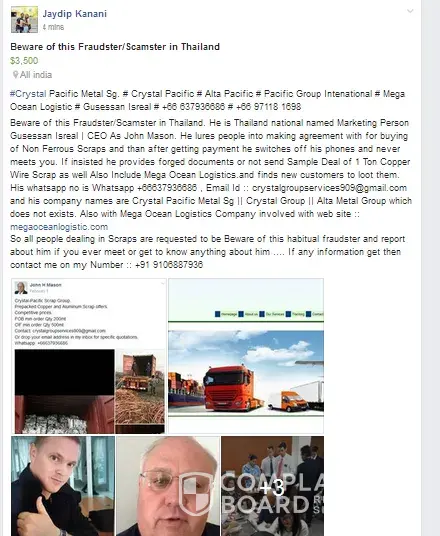 Also published a warning about such fraudulent companies and delusional