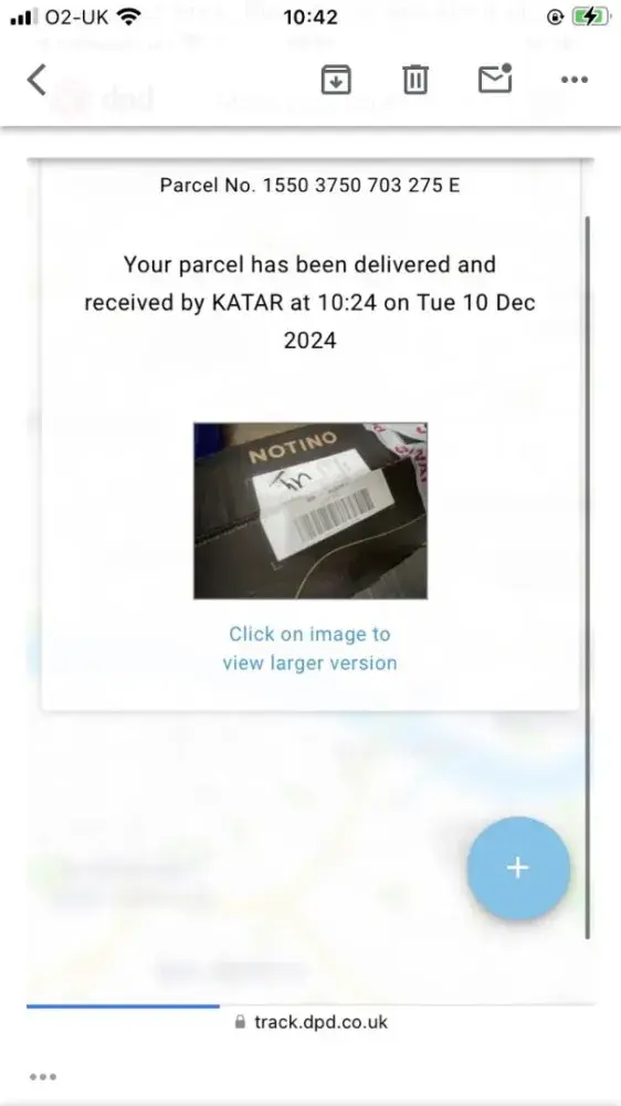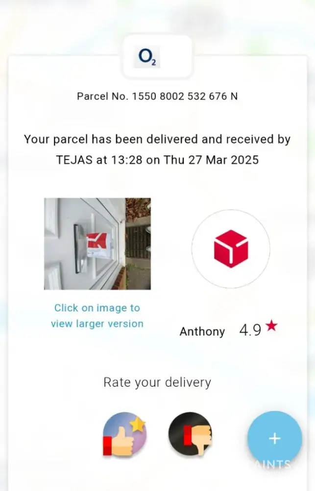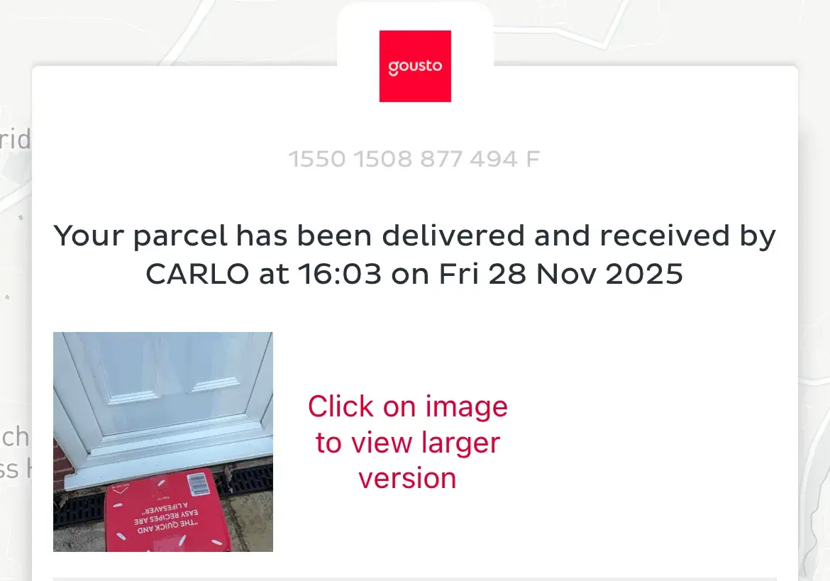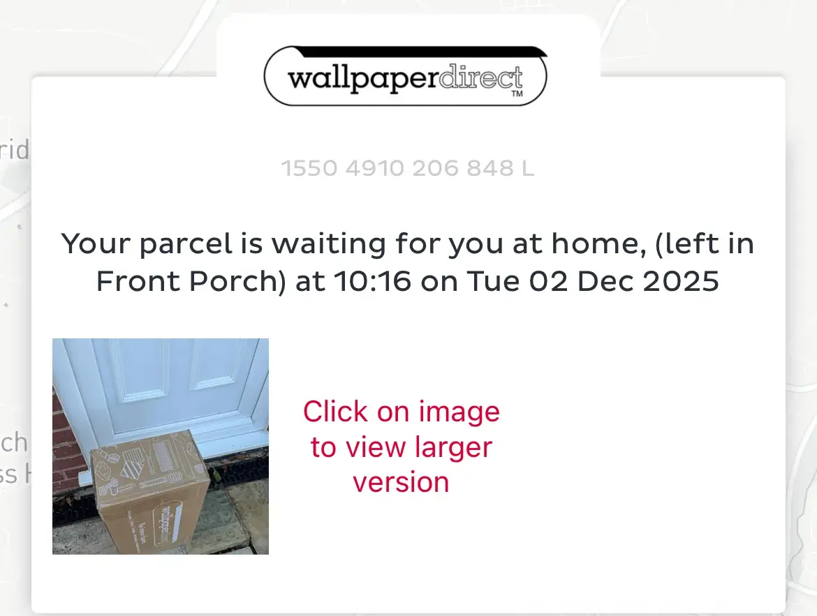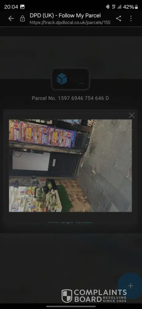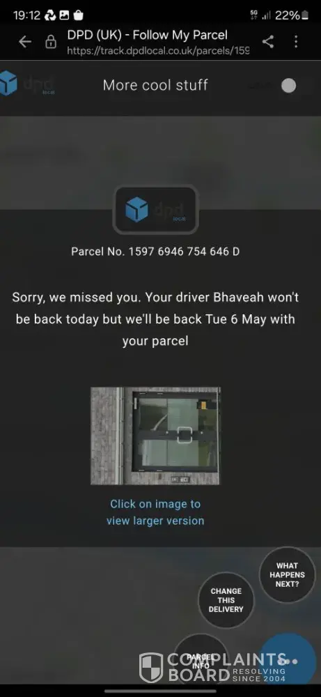 I am away on holiday but driver left item pictured on my doorstep & messaged me “ Your parcel has been delivered and received by LEE at 13:50 on Fri 19 Dec 2025.” No one called Lee either in or either side of my house. Picture shows parcel on my doorstep. Rang DPD speaking to non English person but he was not interested, stating to get in touch with sender. Disgraceful attitude from all sides.