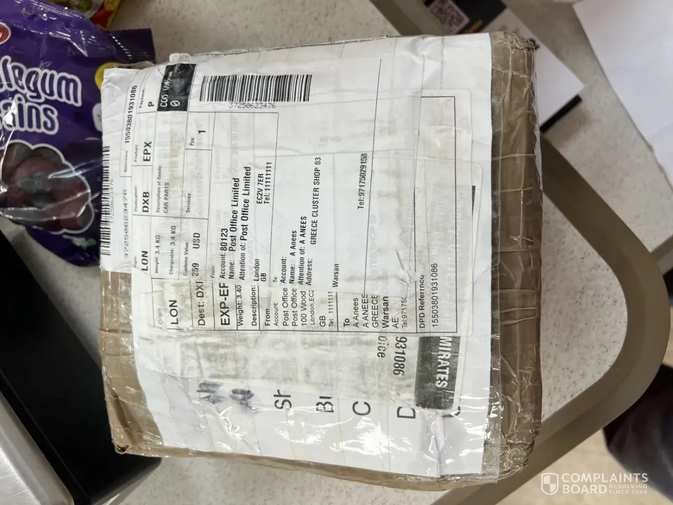 My name is Martin Newton and on 27th March 2025 I posted a parcel at the post office 105 church walk, Burgess Hill, Sussex. The service they used was DPD and the address the parcel was sent to was. Anees Keys Shop 03 Greece Cluster Building L01 International City Al Warsan Dubai U.A.E I was charged £44.27 for this service. Today the parcel was returned to...